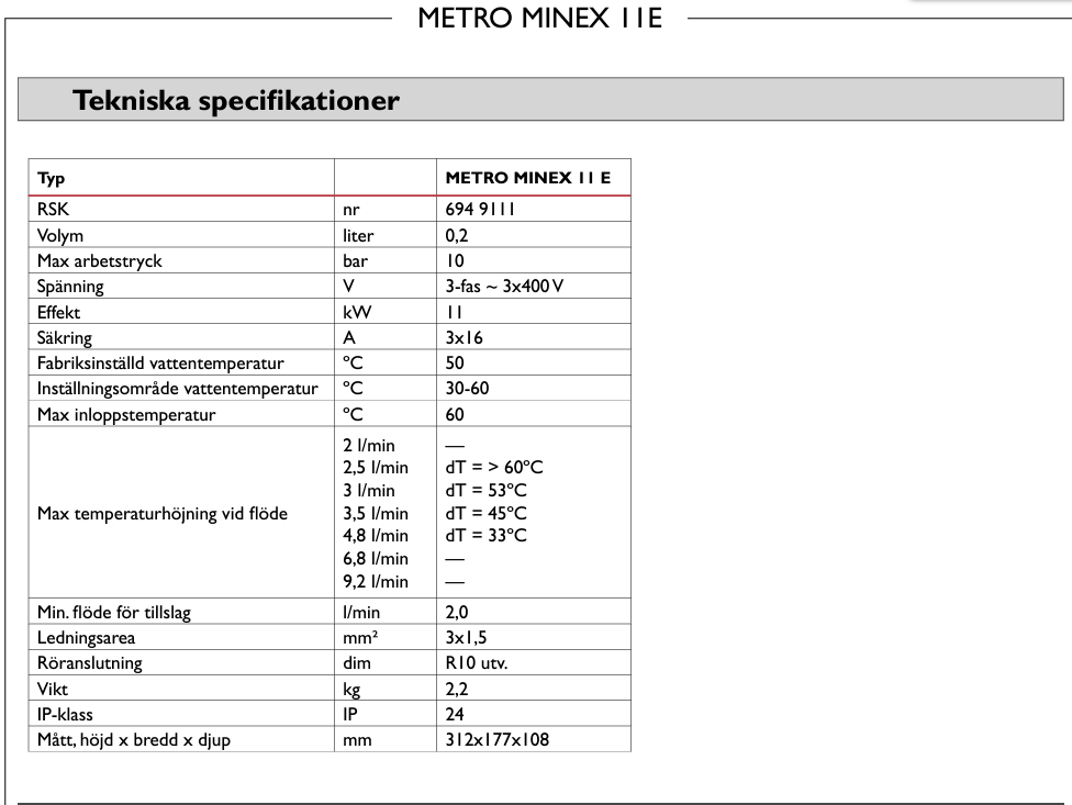 VARMVATTENBEREDARE METRO MINETT 15 R METRO THERM5650 kr