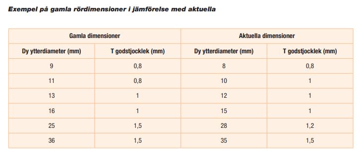 Ytterdiameter, mm Godstjocklek, mm Innerdiameter, mm