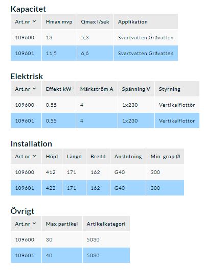 Pumparna finns även med vertikalflottör (betecknas med ”-GM”) som ger ökad driftsäkerhet eftersom den inte kan hänga sig på andra objekt och gör det även möjligt att installera i en mindre pumpgrop.