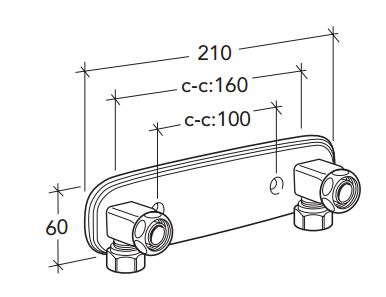 Blandarfäste med 160 c/c, för synlig rördragning. Med kopplingar i storlekarna 12 mm och 15 mm och centrumavstånd 160 mm.