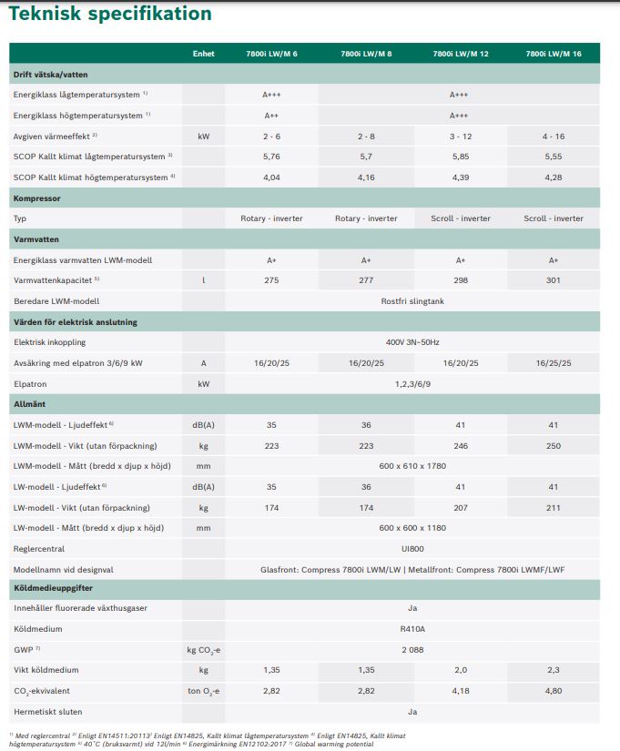 Bosch Compress 7800i LWMF är en vätska/vatten värmepump för energikällorna mark, berg, sjö eller grundvatten.