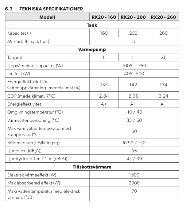 ComfortZone RX20 / 200 L varmvattenberedare med inbyggd värmepump!Art nr. 336431900 kr