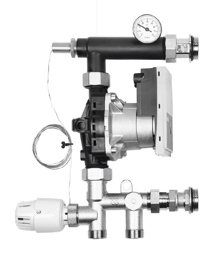 Shunt FS 65 Konstant är en golvvärmeshunt för konstanthållning av framledningstemperatur som skall monteras direkt mot Floorés Golvvärmefördelare 1” Rostfri.