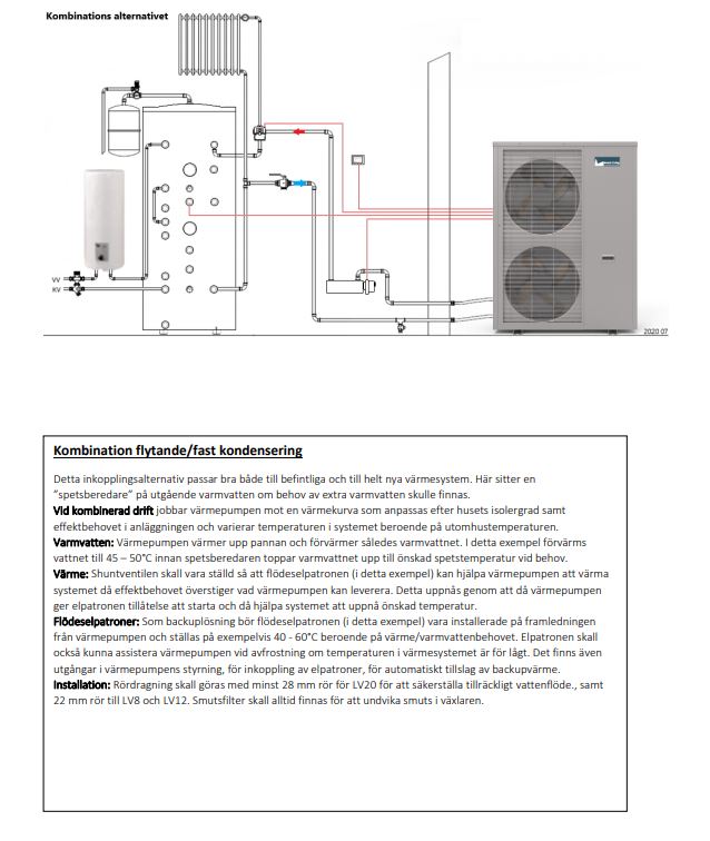 Alla värmepumpsinstallationer skall ha elpatron som tar vid när temperaturen sjunker annars gäller inte garantin på denna produkten man måste följa instruktionerna i manualen.