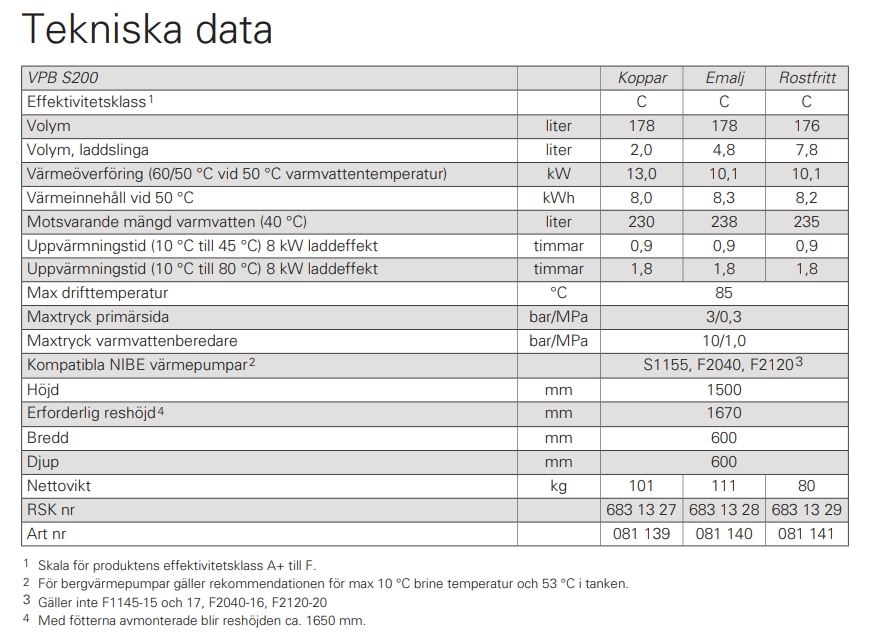 NIBE VPB S200 & VPB S300och bergvärmepumpen NIBE S1155 har en anpassad konstruktionsdesign, vilken ger en stilren systemlösning med möjlighet till dold rördragning mellan produkterna. Lagringstanken har isolering av polyuretan vilket ger mycket god värmeisolering.